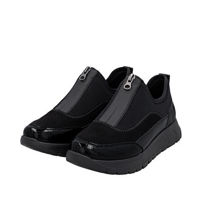 Suede Shoes with Front Zipper in Black