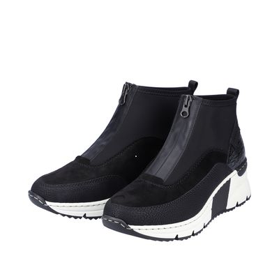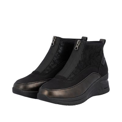 Wedge Ankle Boots with Front Zipper in Black